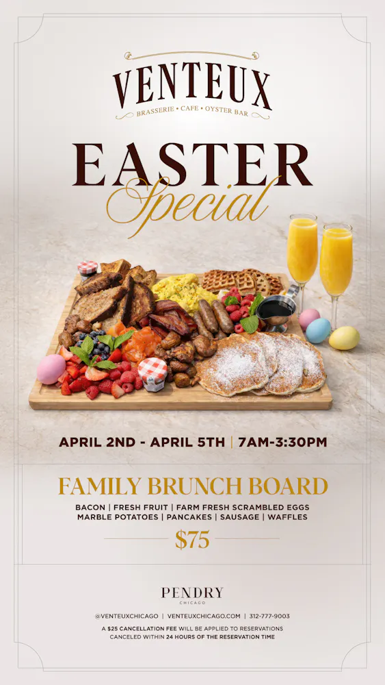 Looking for the perfect Easter brunch in Chicago? This year, elevate your holiday plans with a beautifully curated Easter Family Brunch Board at Venteux, located in the heart of Michigan Avenue. Whether you're gathering with family or reconnecting with friends, this limited-time Chicago Easter brunch experience is designed for sharing, savoring, and celebrating.